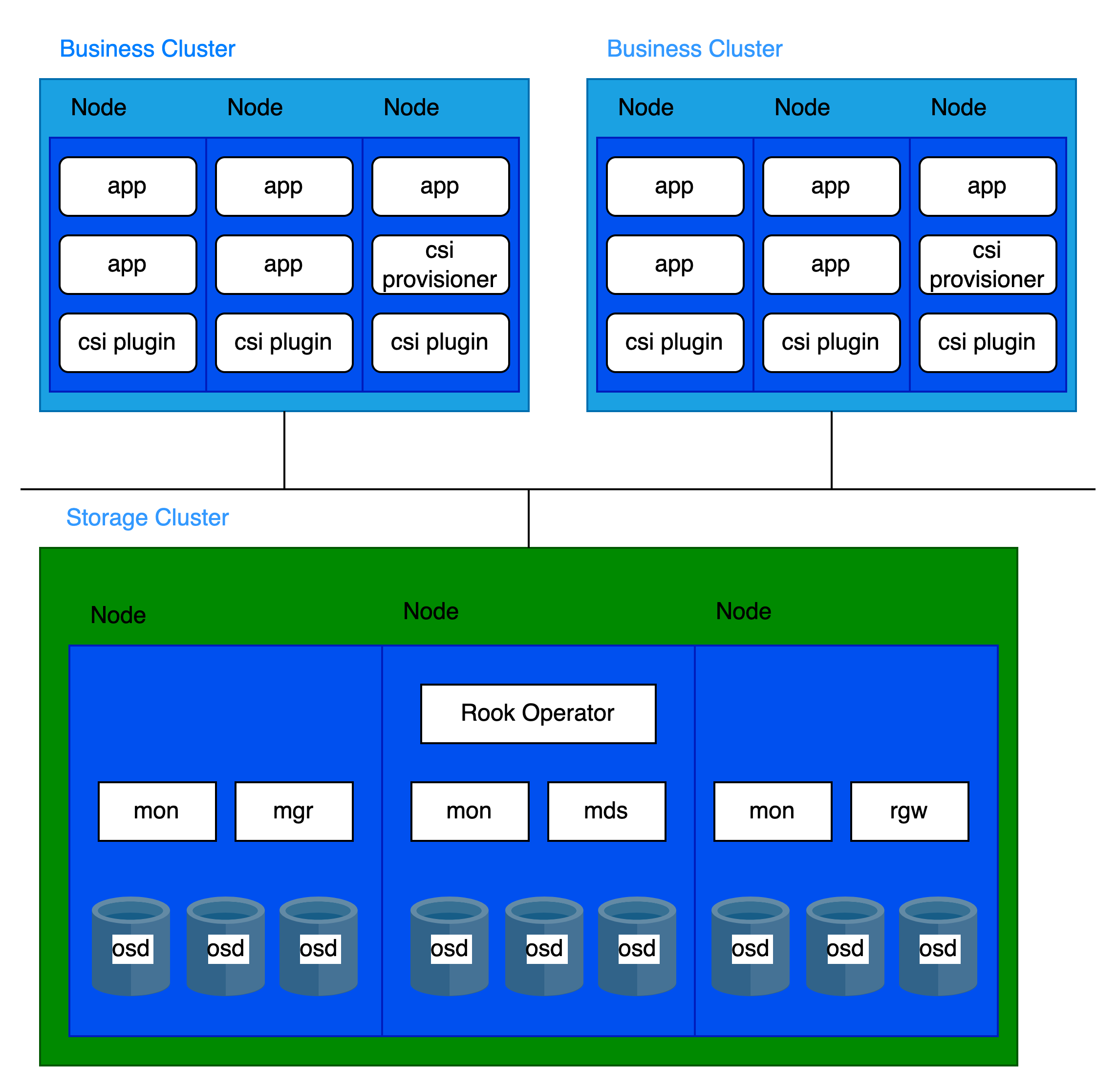 To ensure the performance and stability of the platform's distributed storage, only the platform's core components and distributed storage components are deployed in the dedicated storage cluster, avoiding the co-location of other business workloads. This separated deployment approach is the recommended best practice for the platform's distributed storage.